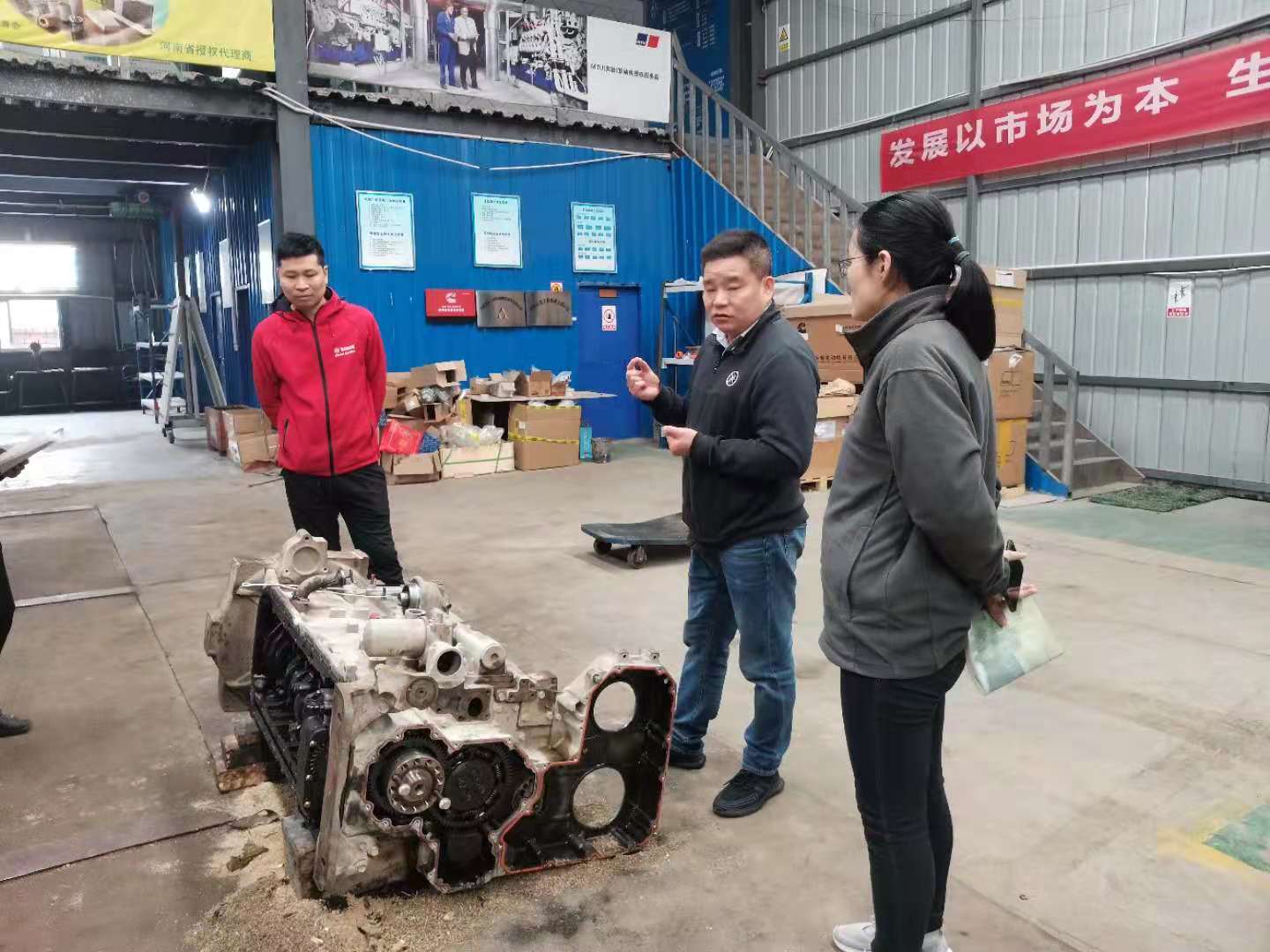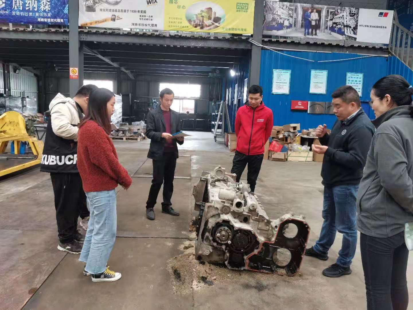 此次培訓(xùn)主講人是惠眾康明斯負(fù)責(zé)人余河中和馮總,參與培訓(xùn)有公司服務(wù)部、營業(yè)部以及配件部的員工。結(jié)合實物讓大家對康明斯發(fā)動機的工作原理有更深刻的認(rèn)識。